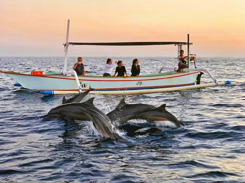Lovina is best known for its early morning dolphin tours, usually starting between 5:30 and 6:00 AM. Local fishermen operate traditional wooden boats called jukung, taking visitors out to sea before sunrise. As the sun begins to rise, pods of dolphins appear near the boats, jumping, racing, and gliding through the waves.